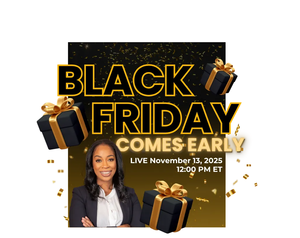 Inside this one-time-only Black Friday session, you’ll learn the exact steps to transform your professional brand into a visibility engine that attracts high-value clients, speaking engagements, and strategic partnerships without feeling salesy, spammy, or burnt out from posting all day.